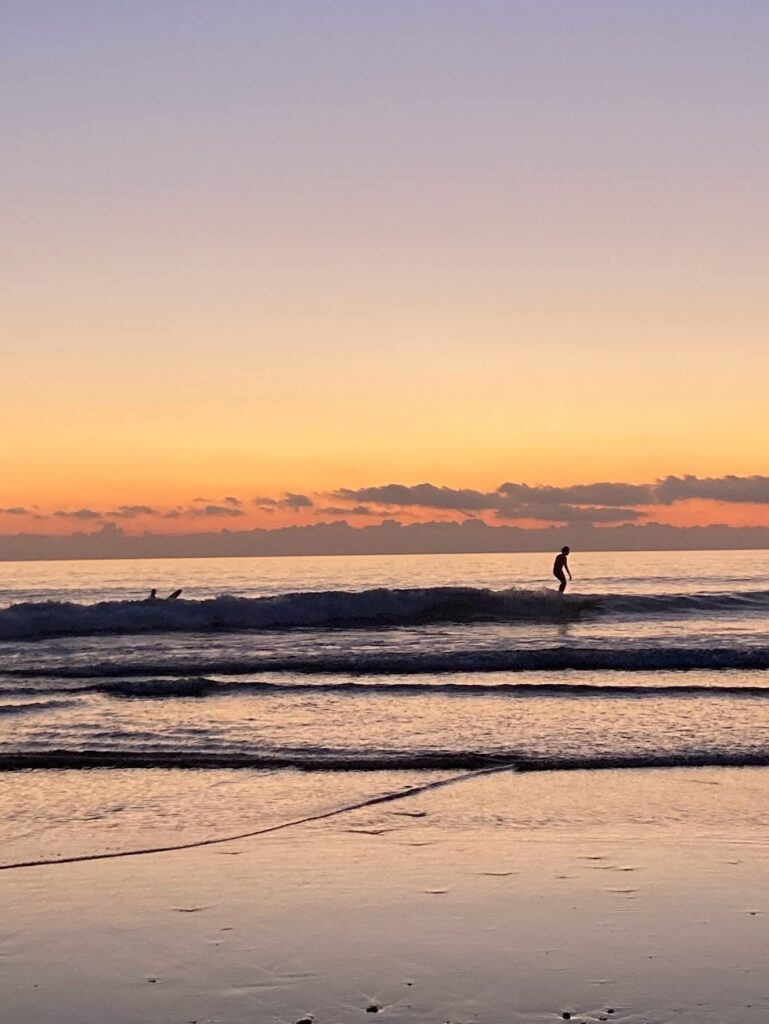 Walk miles along the shore or rent a surfboard if you spot good sets coming in! The water temperature won’t be too cold, so you might not need a wetsuit (maybe a rashguard.)